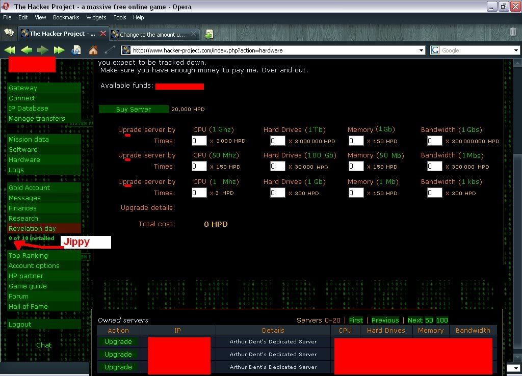 Uprade server by CPU (5 Mhz) Hard Drives (100 Mb) Memory (300 kb) Bandwidth (0,1 kbs)